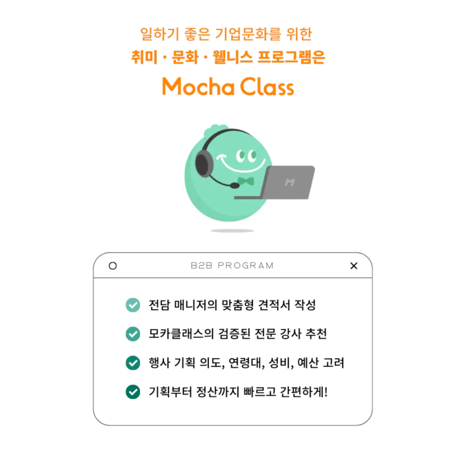 모카클래스는 단순한 중개가 아닌, 담당자님의 성공적인 연말을 위한 완벽한 기획 파트너라는 점 기억해주실거죠 ?